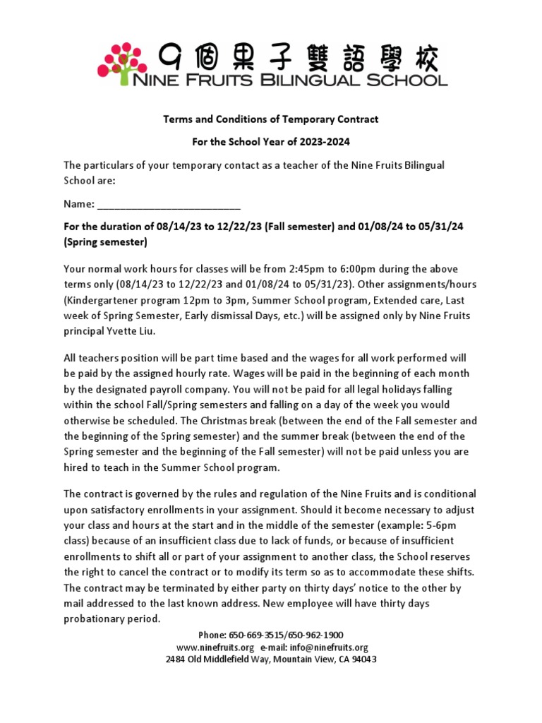 2023 2024 Terms and Conditions of Temporary Contract For Teachers